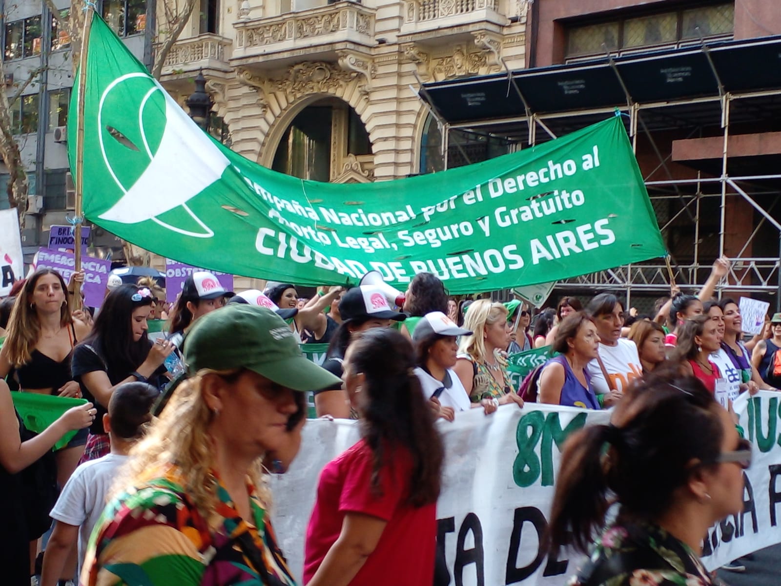 En Buenos Aires este año hubo dos movilizaciones por el 8M. Una que se dirigió a Plaza de Mayo, encabezada por la Campaña Nacional por el Derecho al Aborto (CABA). Junto a organizaciones feministas, familiares de víctimas de femicidios, y agrupaciones de Izquierda. La otra convocatoria la realizaron agrupaciones oficialistas, periodistas e integrantes del colectivo Ni una Menos y sindicatos que marcharon al Congreso de la Nación.