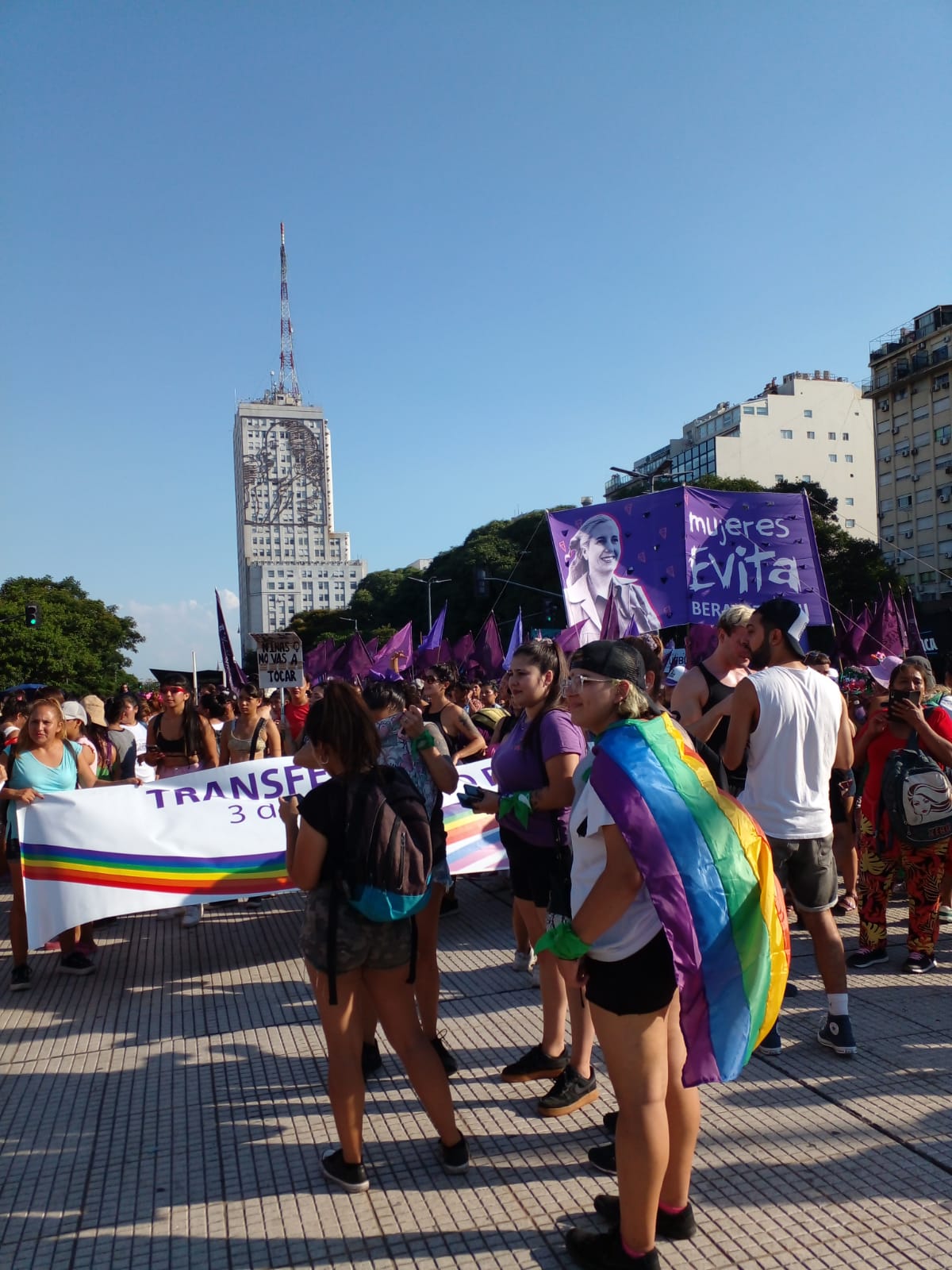 Durante la jornada del 8 de marzo (8M) en el día internacional de la mujer, miles de mujeres marcharon en diferentes puntos del país. Diversas agrupaciones de mujeres y diversidades colmaron la Avenida 9 de Julio desde el Ministerio de Desarrollo Social hasta Avenida de Mayo, en Buenos Aires. En una caravana de cantos, bombos y reclamos por los derechos conquistados y los que que aún falta conseguir.
