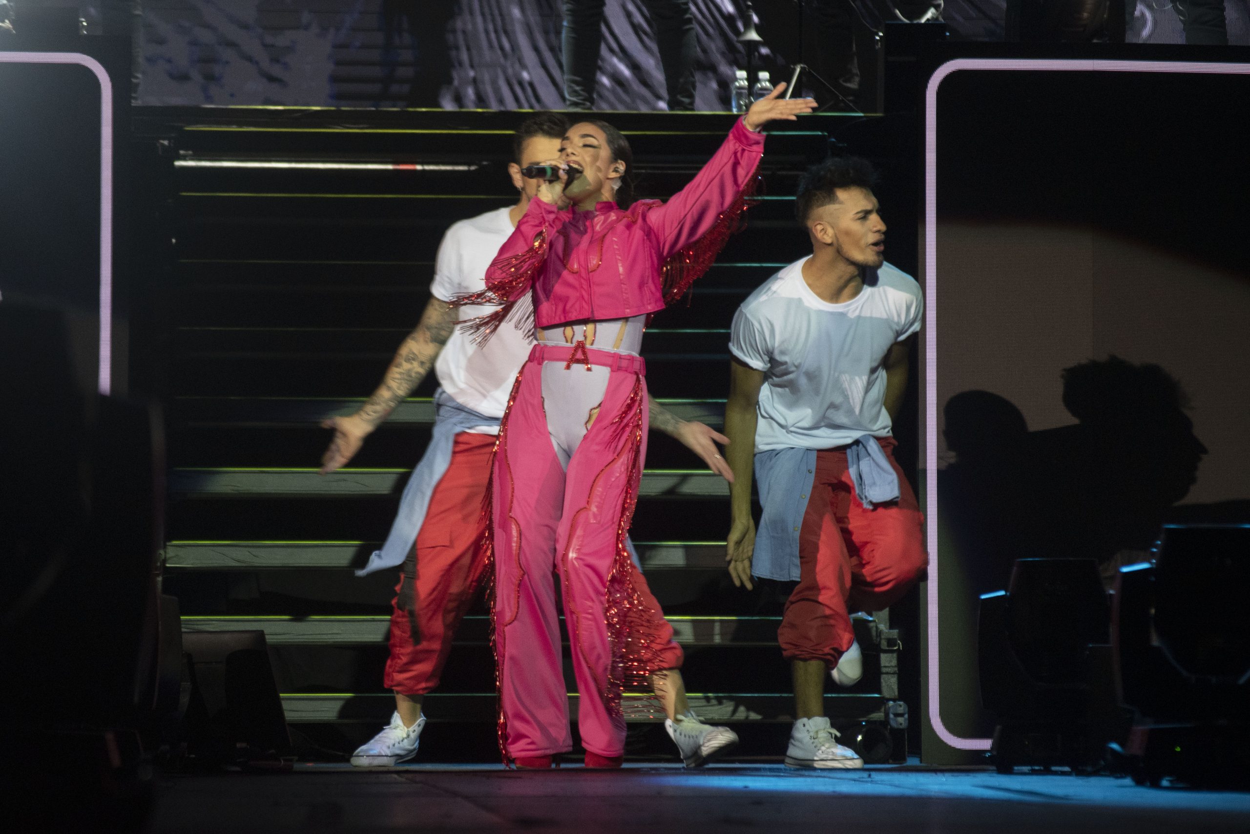 Con una energia arrasadora la artista llego con una produccion de excelencia que supero todos los estandares, que incluyo bailarines y una escenografia majestuosa .