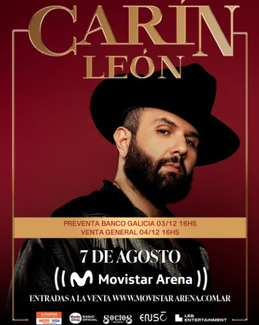 El ícono del regional mexicano, Carín León , confirma su regreso a Buenos Aires para un show cargado de emoción y desamor , en el Movistar Arena el 7 de agosto.